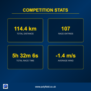 The results folder is scanned for event data, providing a social media ready graphic of the total distance, total athletes, total race time and average wind.